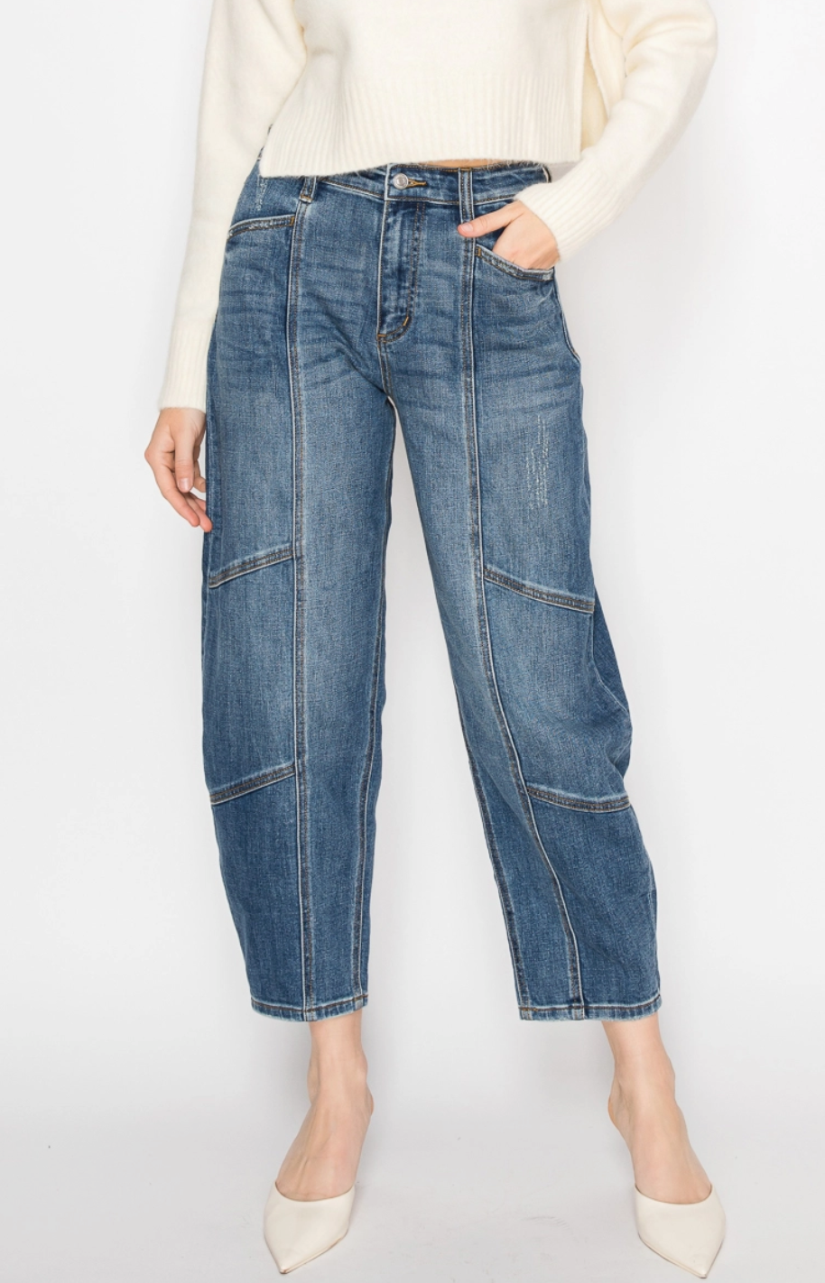 Our most loved High Rise Relaxed Barrel Jeans relaxed through the hip and thigh with a tapered leg that creates a laid-back, comfortable silhouette without being overly baggy. The tapered ankle offers a streamlined look. Style tip tuck in your top or choose a cropped one to create a more defined waist and elongate your legs, following the rule of thirds.