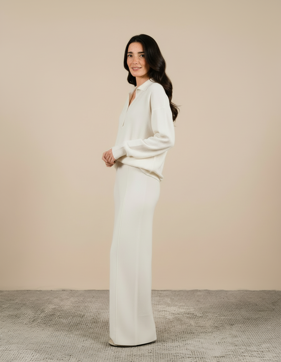 Cashmere Mix Polo Knit Sweater a luxurious classic style with a beautiful contemporary update.  Our versatile polo knit is designed with enlarged collar for a bold and minimalist look. Made in our extremely soft, durable mix cashmere, with sophisticated details it's the perfect addition to any women's wardrobe.
